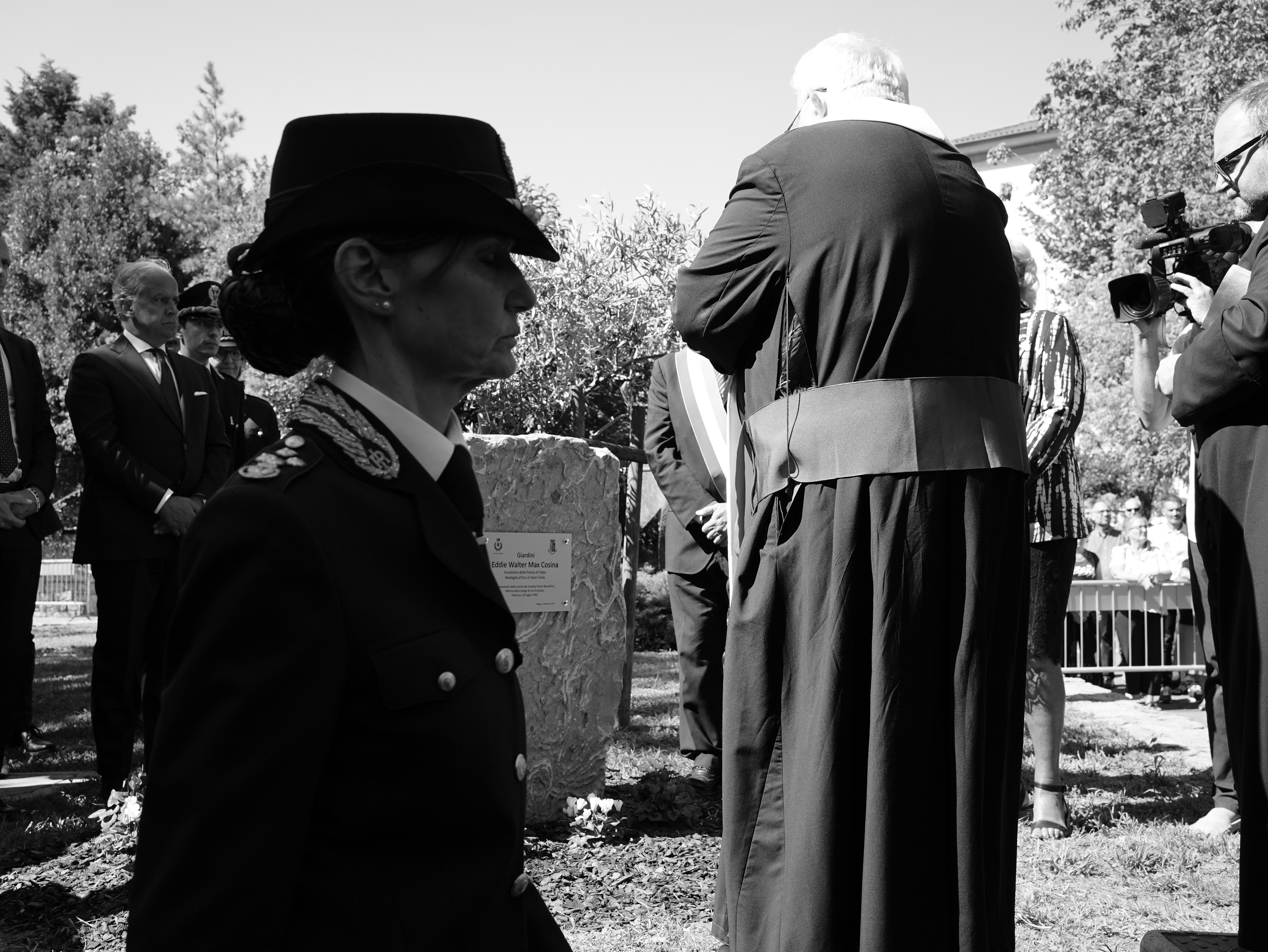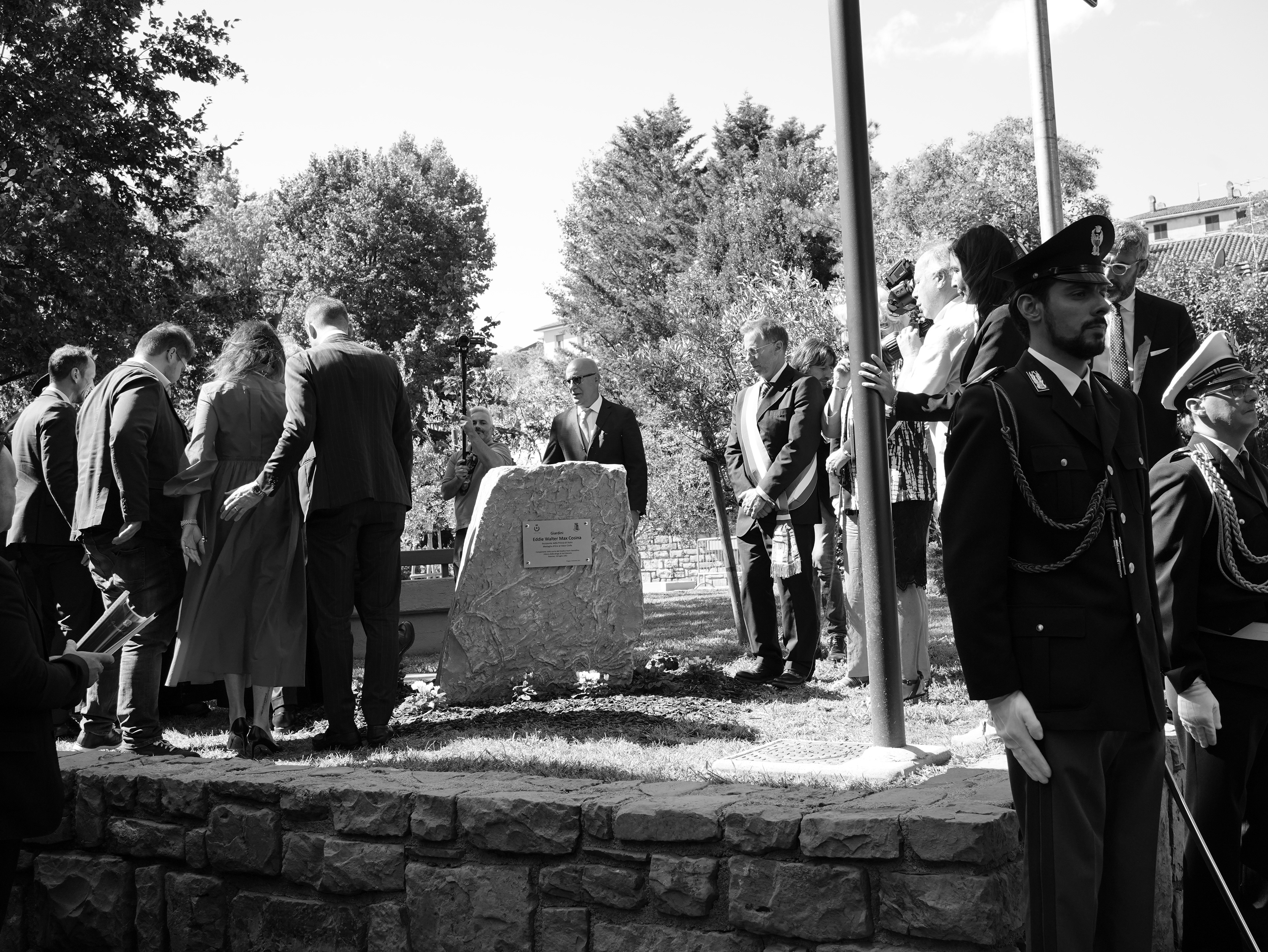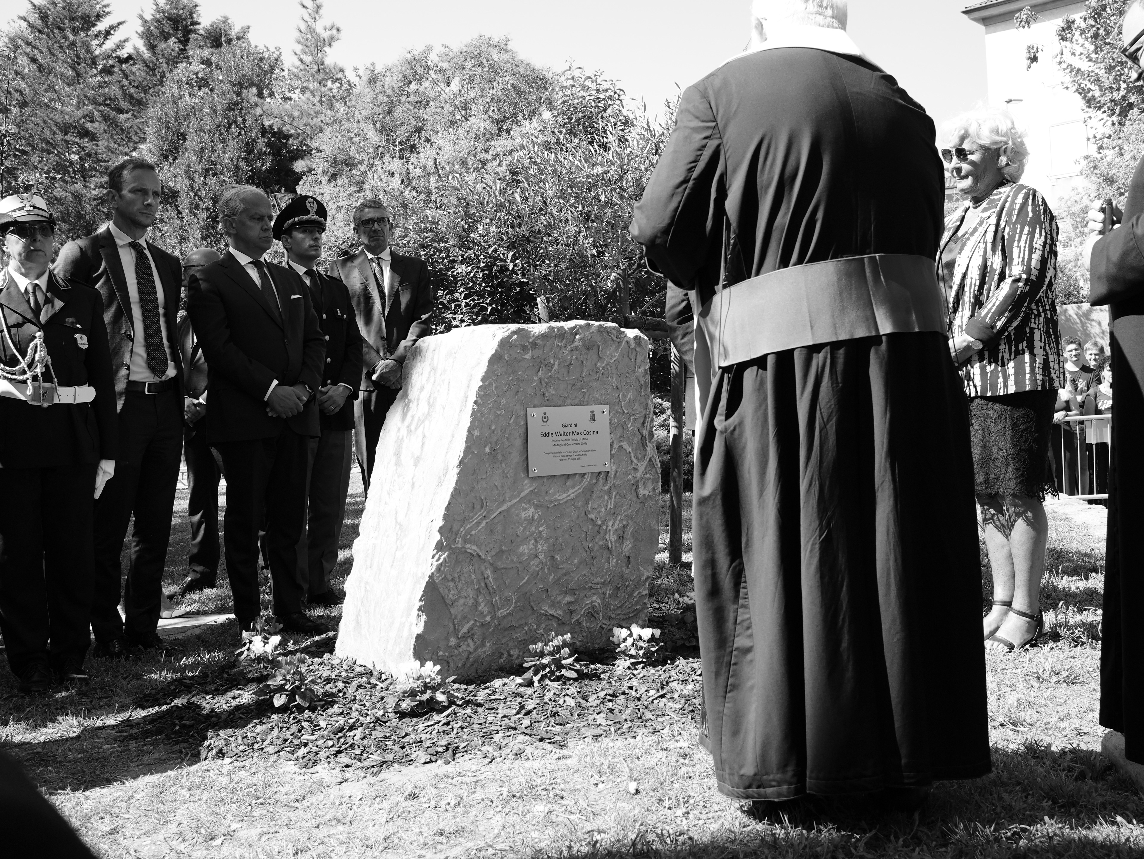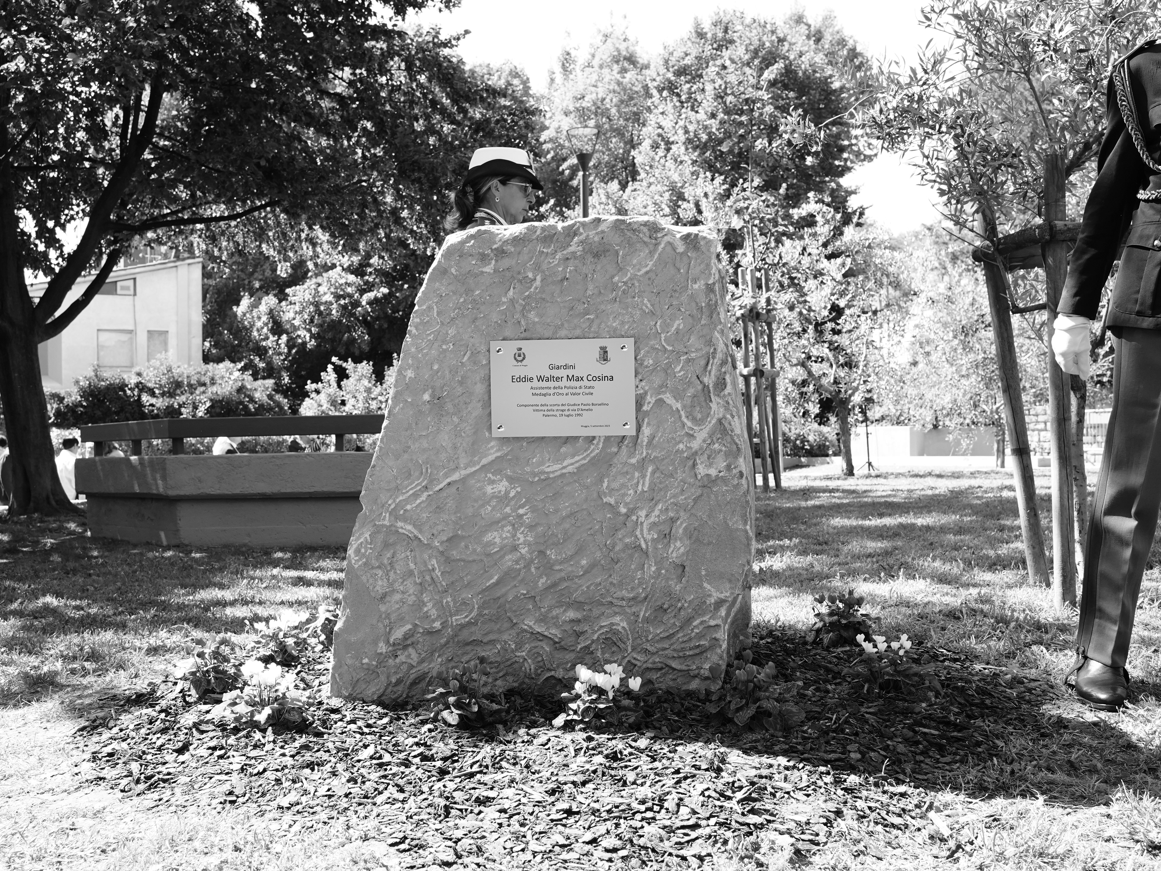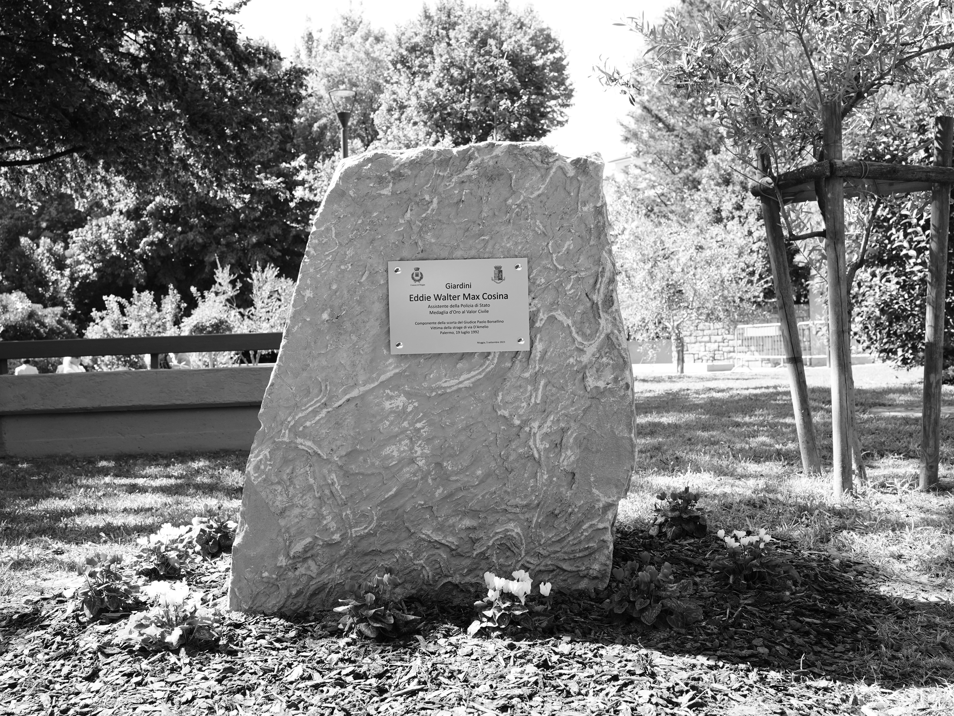 Il 5 Settembre 2023 a Muggia (TS), alla presenza del Ministro dell’Interno Matteo Piantedosi e del Capo della Polizia Direttore Generale della Pubblica Sicurezza Vittorio Pisani, si è svolta la cerimonia di intitolazione dei Giardini Europa a Eddie Walter Max Cosina, Assistente della Polizia di Stato e medaglia d’Oro al Valor Civile, componente del dispositivo di sicurezza del giudice Paolo Borsellino che, il 19 luglio 1992 a Palermo, rimase vittima della strage di via D’Amelio.